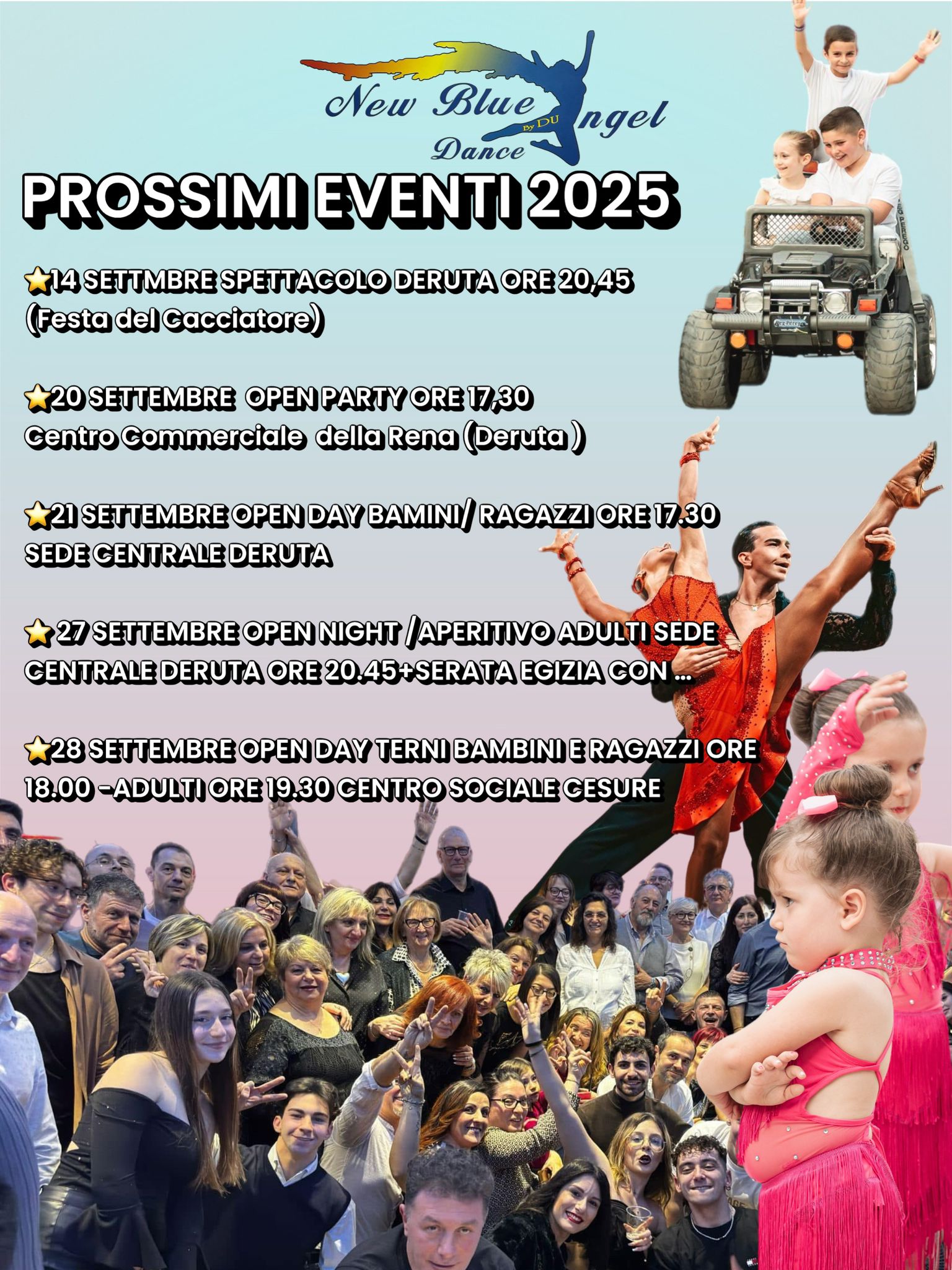 L’ Associazione Sportiva NEW BLUE ANGEL by DU è studiata ed organizzata per permettere di soddisfare tutte le richieste di chi si affaccia al magico mondo del ballo: da chi vede in questo semplicemente un sano passatempo o un’attività variegata e aggregante di modesto impegno fisico e mentale, a chi vuole spingersi un po’ oltre ed avventurarsi nell’affascinante mondo della DANZA SPORTIVA AGONISTICA, attraverso piani di lavoro mirati e studiati su misura in base all’età e al livello degli atleti. Il nostro Staff accompagnerà la vostra crescita ed il miglioramento di ogni allievo non solo attraverso lezioni di gruppo ed individuali, stage ed allenamenti, ma anche tramite l’organizzazione e la partecipazione a feste, serate danzanti, competizioni, trasferte e campionati a livello provinciale, nazionale ed internazionale, favorendo ancor di più le opportunità di scambio e condivisione tra diverse realtà.